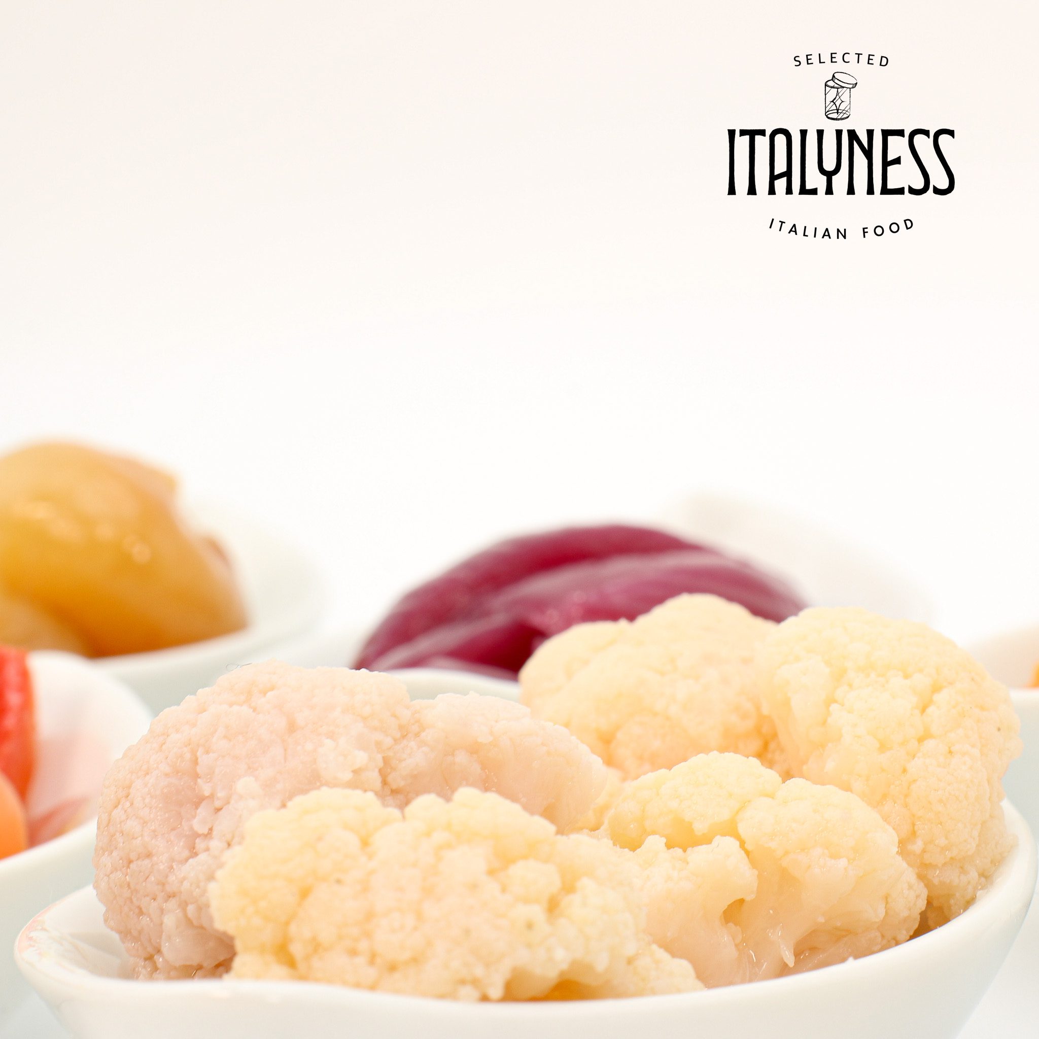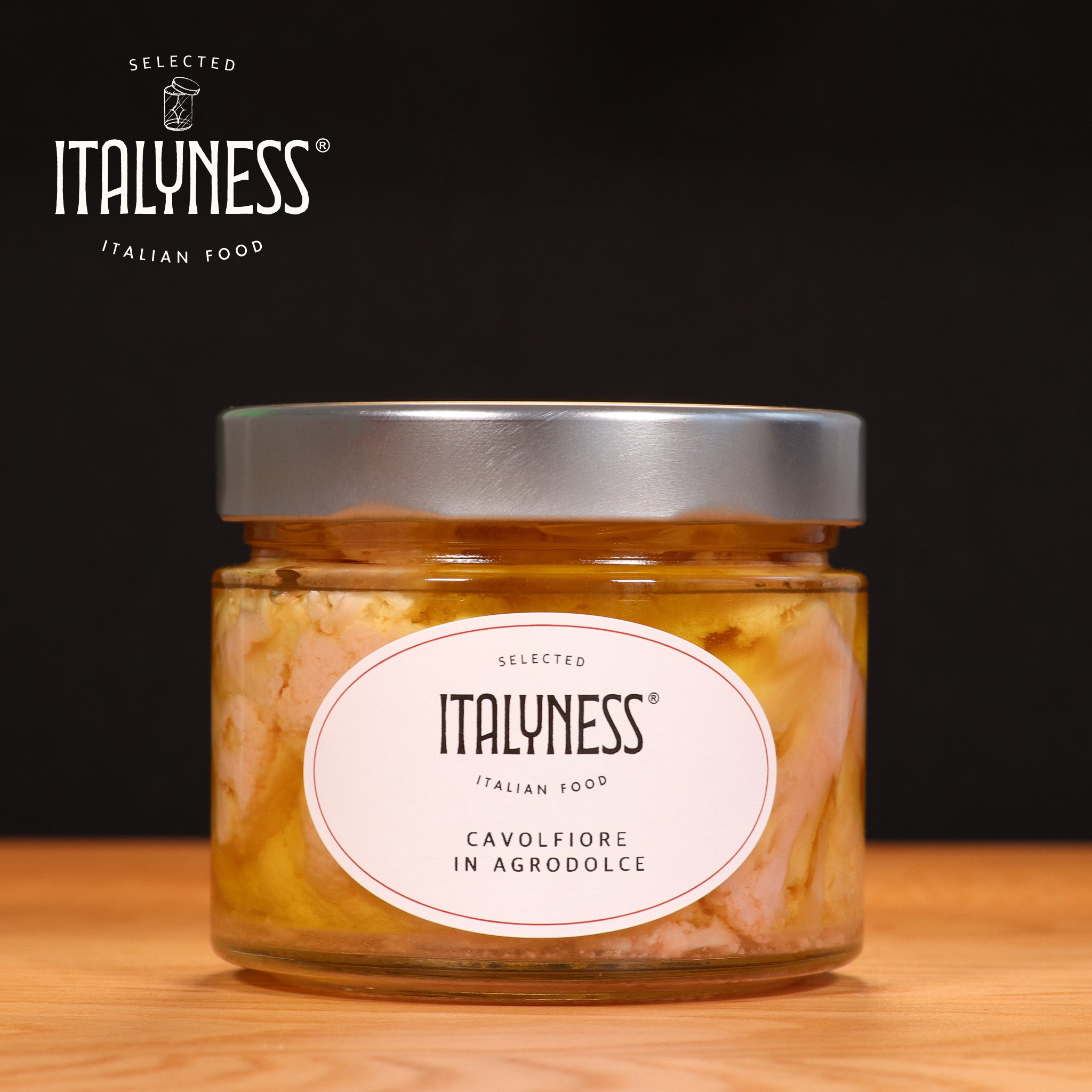 Il Cavolfiore in Agrodolce è preparato con ingredienti genuini, senza alcun additivo né colorante e con ortaggi provenienti da agricoltura sostenibile. La ricetta del Cavolfiore in Agrodolce è tramandata da molte generazioni ed è identica a quella originaria, che prevede l’utilizzo delle cimette di cavolfiore.