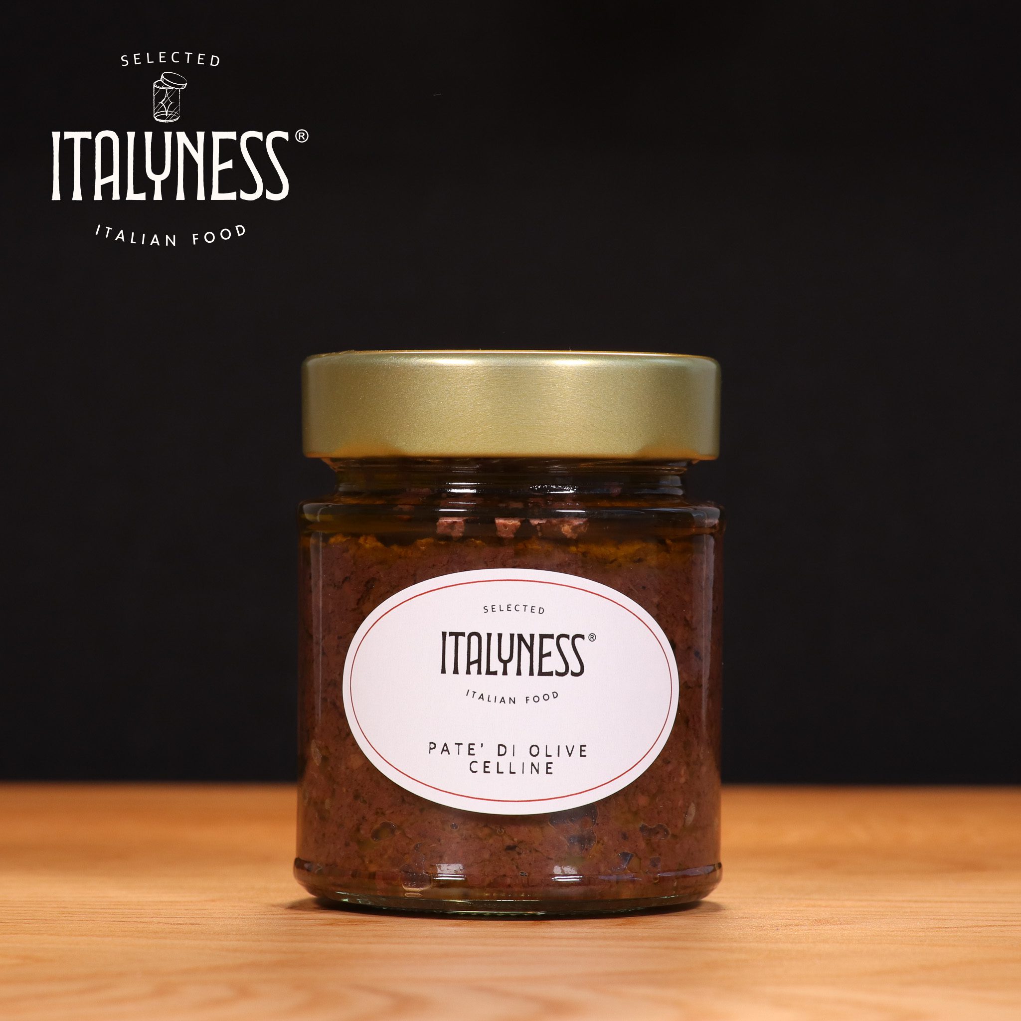 Il Patè di Olive Nere contiene Olive Celline macinate finemente, con una consistenza morbida e cremosa da spalmare sui crostini di pane come aperitivo. Il Patè di Olive Nere può essere utilizzato per guarnire i sandwich ed è gradevole se gustato in accompagnamento a carni bianche alla piastra o con il pollo arrosto.