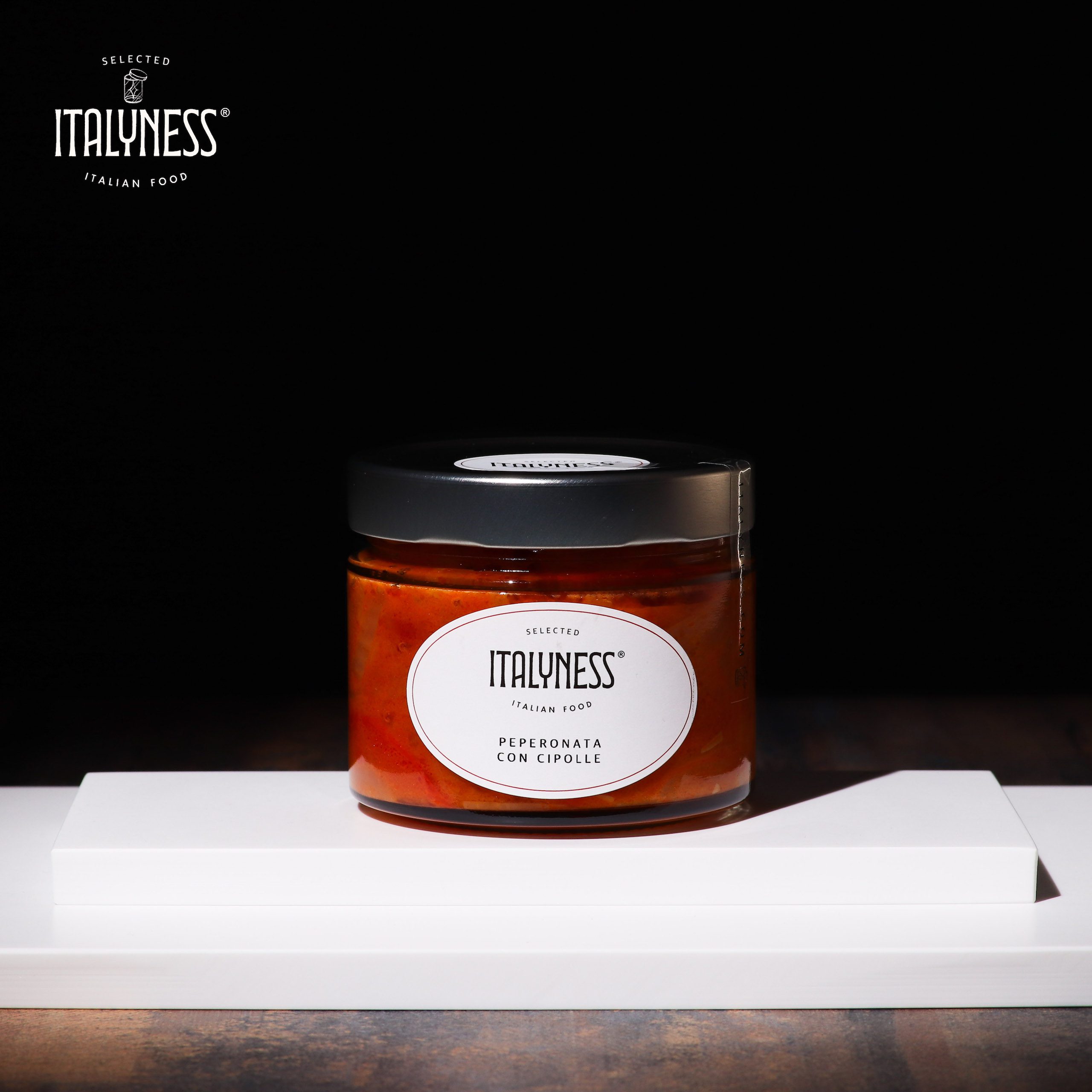 La Peperonata con Cipolle è preparata con peperoni di prima qualità in una morbida emulsione con cipolle, pomodori , olio e aceto di vino. La ricetta è stata tramandata da molte generazioni e conserva le caratteristiche originarie. Si abbina a formaggi, salame, bolliti di carne, a verdure al vapore, è ottima per farcire panini gourmet, ideale come condimento per la pasta e può essere gustata anche sulla pizza.